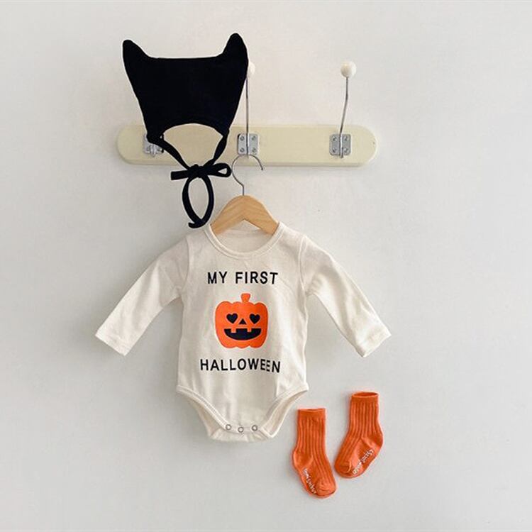 新作 ベビー ハロウィン 帽子付き コスプレ 仮装 かぼちゃ プリント 可愛い ロンパース 幼児