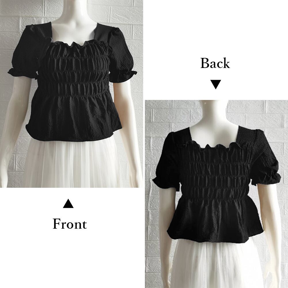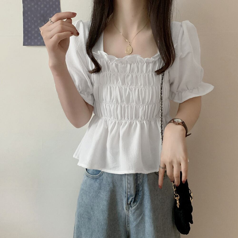 着やせ ブラウス/半袖 無地トップス/鎖骨見せシャツ春夏