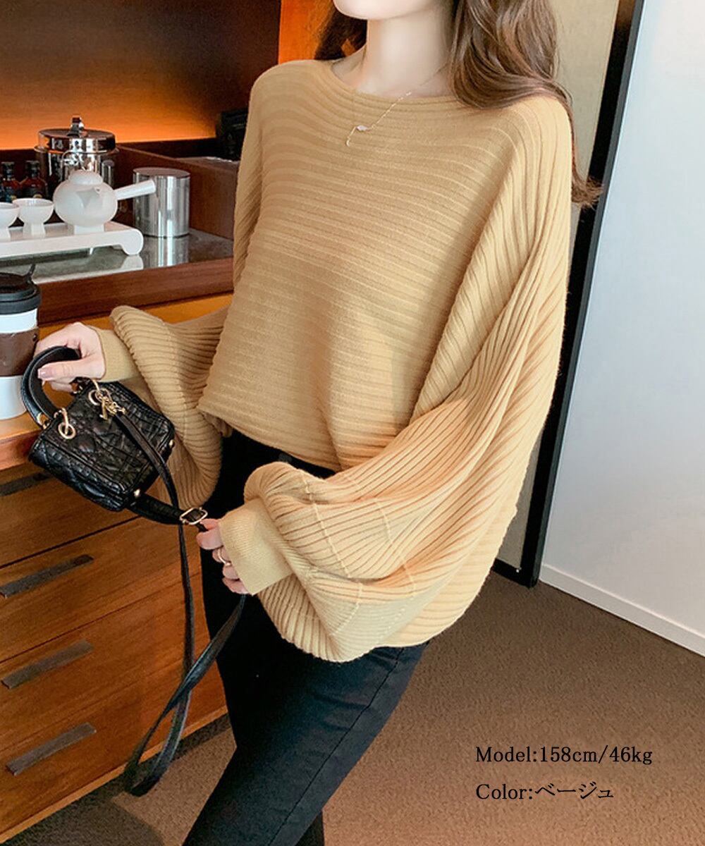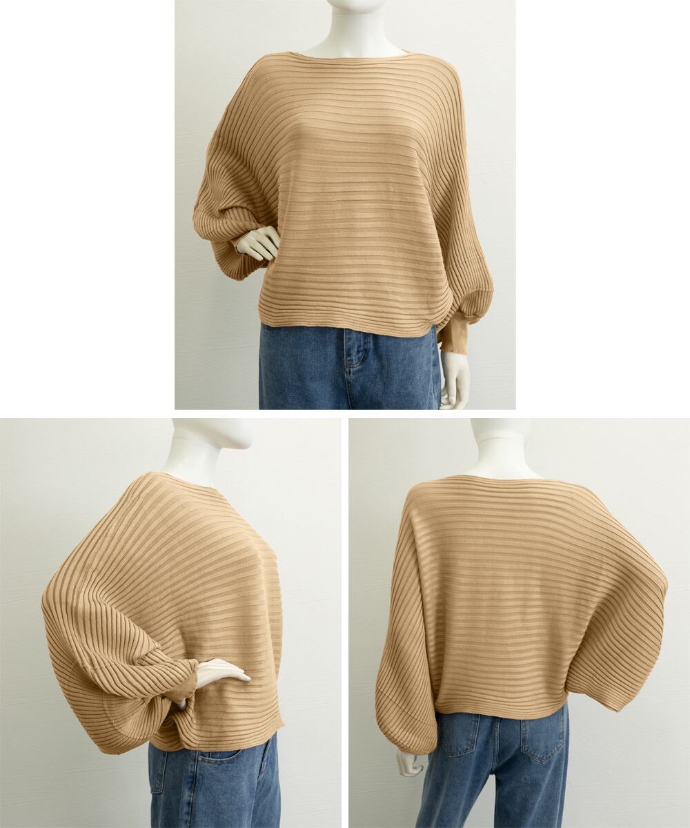 柔らかく優しい肌ざわりに仕上げたドルマンスリーブニットトップス