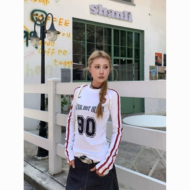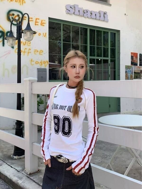 ■デザイン レディースショート丈ストライプ長袖Tシャツは、アメリカ風のヴィンテージデザインが際立っており、周囲の視線をつかむおしゃれな一着です!タイトなシルエットが体のラインを美しく際立たせ、スポーツ風の雰囲気を醸し出します。ストライプ柄が目を引き、カジュアルからスポーティーまで、さまざまなスタイルに合わせやすく、ボトムスとのコーディネートを楽しむことができます!