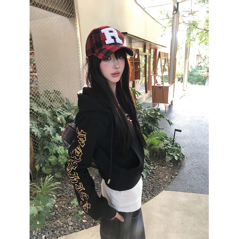 レディース ショート丈 フーディー ジップアップ ゴシック風 レタリング ゆったり カジュアル