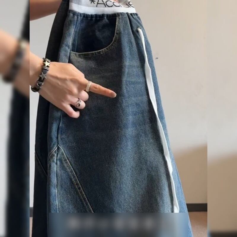 レディース デニムパンツ ゆったり ワイド 美式 ヒップホップ カーゴパンツ 切替デザイン ストリート