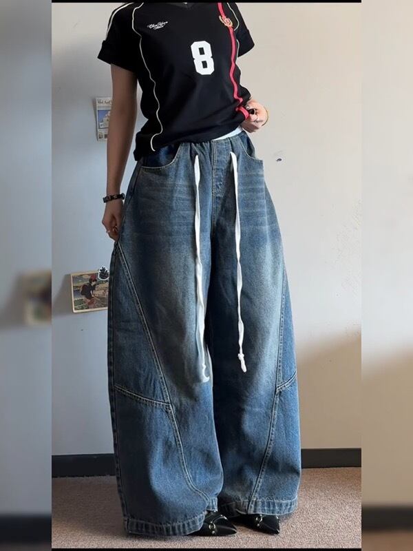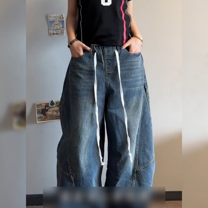 ■デザイン このレディースデニムパンツは、ゆったりとしたワイドシルエットが特徴で、ヒップホップスタイルとストリートファッションが見事に融合しています!切替デザインがアクセントとなり、個性的な印象を与えます。カジュアルな日常使いはもちろん、特別な日のおしゃれにも活躍する一着です。このパンツで、洗練されたリラックス感を楽しんでください!