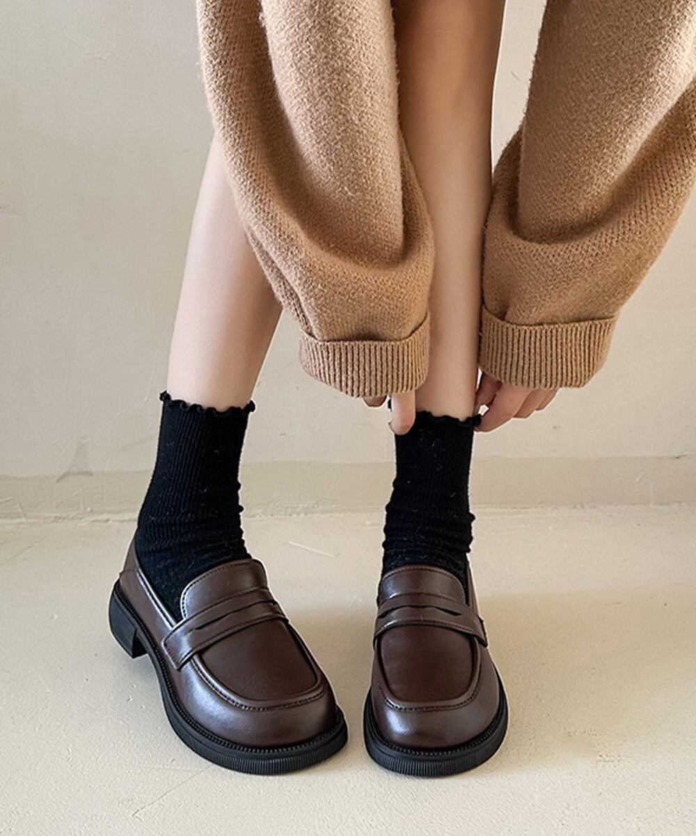 ローファーパンプス 学院風シューズ 太ヒールシューズ