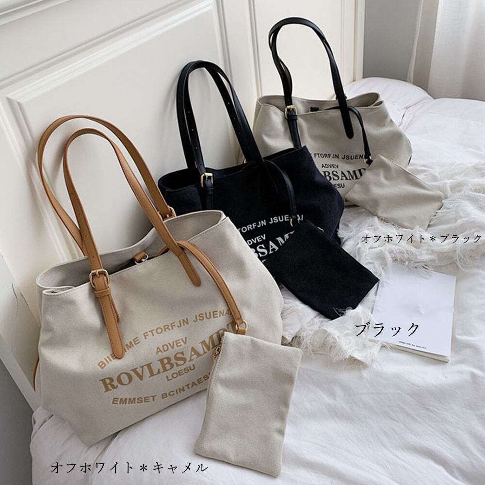 キャンバスバッグ レディース ポーチ付き トートバック 大きめ 肩掛け