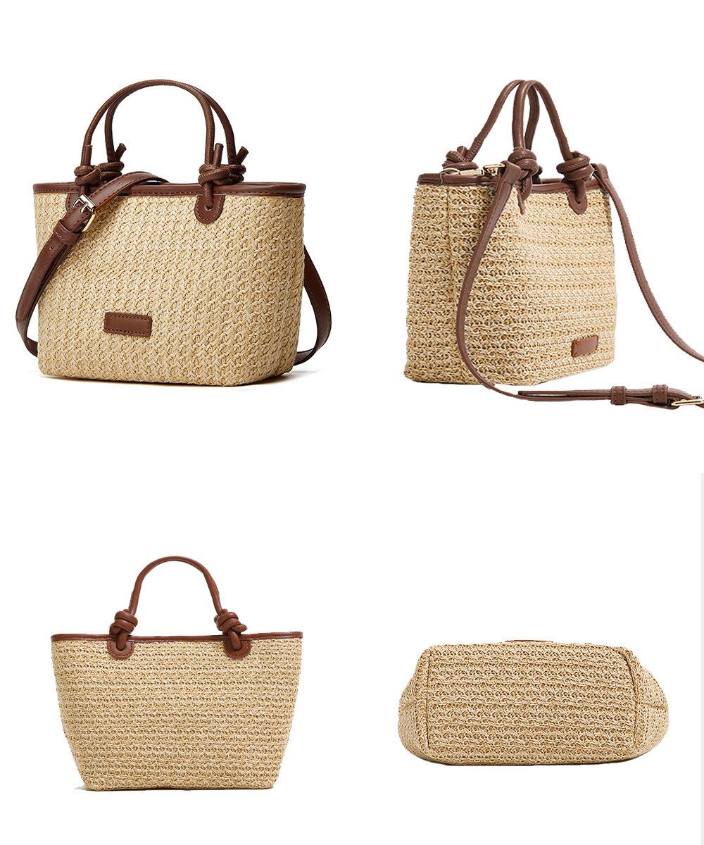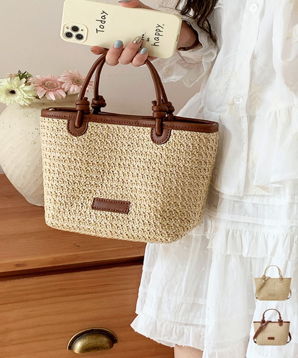 ストローバッグ レディース 可愛い 2WAY 編みバッグ 花火大会手提げバッグ 斜めがけ 麦わら鞄 夏祭り 肩掛けバッグ