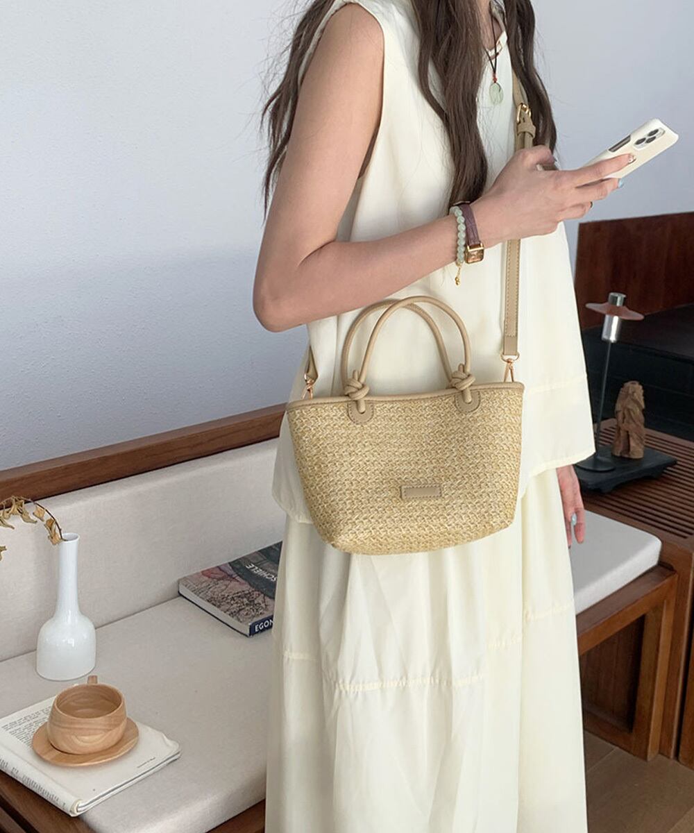 ナチュラルな雰囲気に、フェイクレザーのハンドルが洗練された印象をプラス