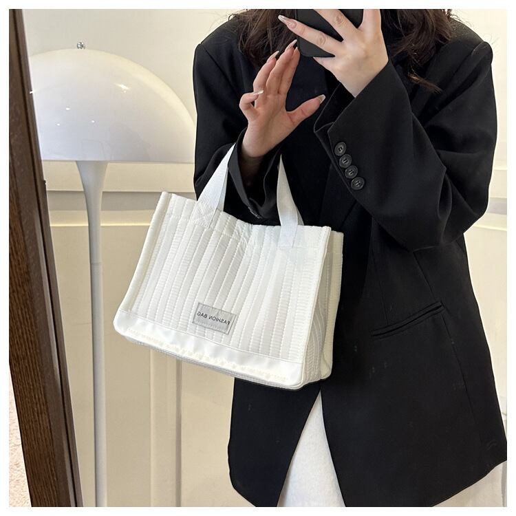 レディース ハンドバッグ 手持ち ランチバッグ キルティング ブラック白 黒 軽い