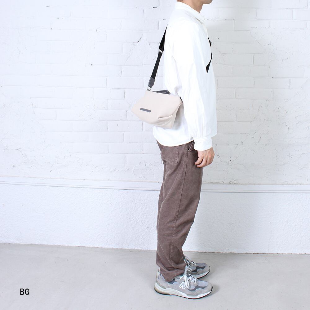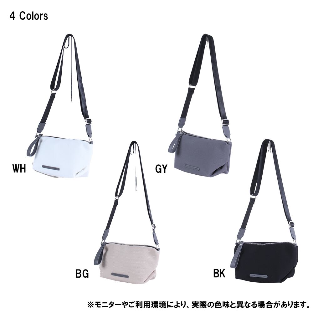 厚みのあるメッシュポリエステル素材を使用。 長財布やスマホなどが収納できる、日常使いにすっぽりハマるサイズ感。 合皮の長目の引手とニッケル8番の金属ファスナーを使用したメインファスナー部がデザインアクセントにもなっています。 側面にマチがなく、コンパクトに折りたたむことも出来る三角マチでコロンとした仕上がりです。 落ち着いた色味とモダンな素材感で、季節を問わずお使いいただけます。 便利で使いやすいポケットが充実 メイン内装部: ファスナーポケット×1 オープンポケット×1 テープの長さ最短94cm最長150cm ぜひこのシリーズで、便利さとスタイルを両立したバッグの魅力をお試しください。