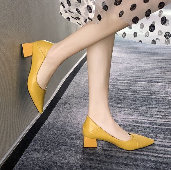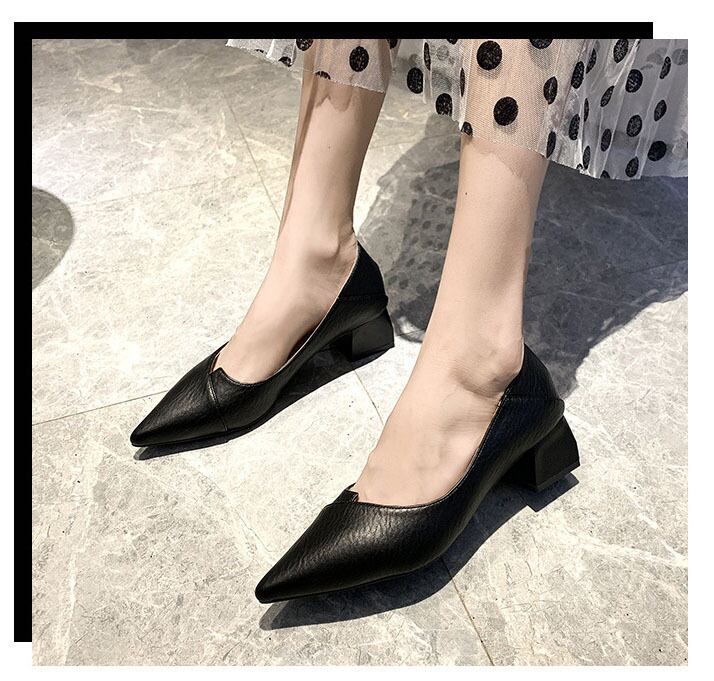 2WAYレディース 太ヒールパンプス ポインテッドトゥ チャンキーヒール 美脚 シューズ