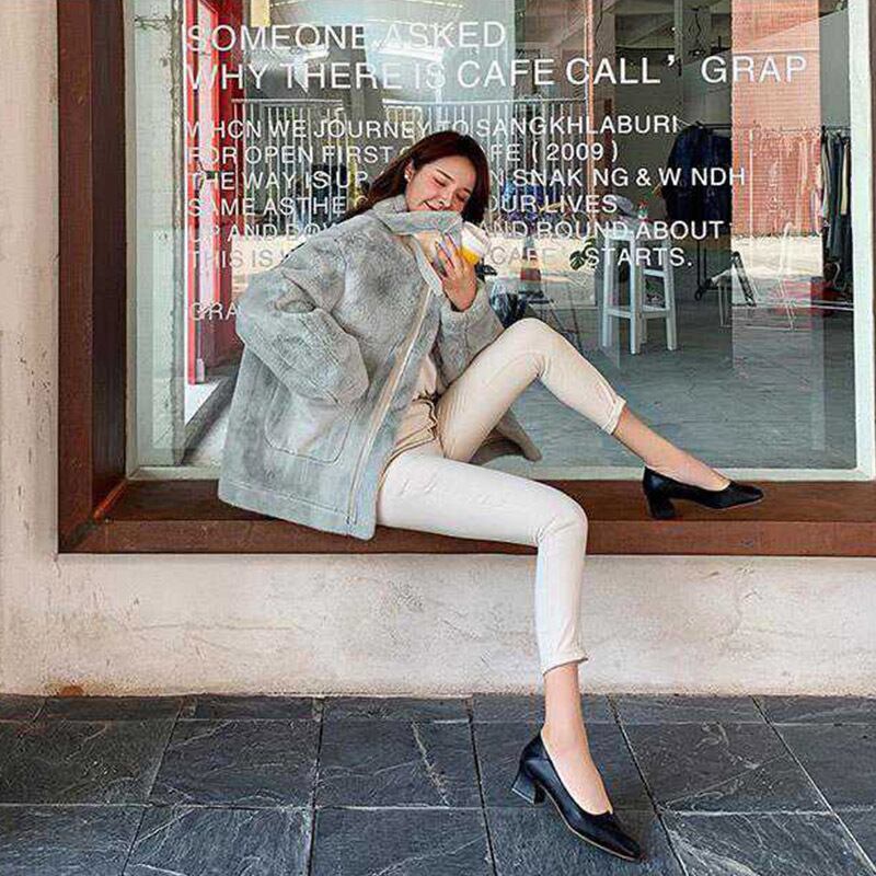 美脚×脚長効果のある4.5cmチャンキーヒールパンプス
