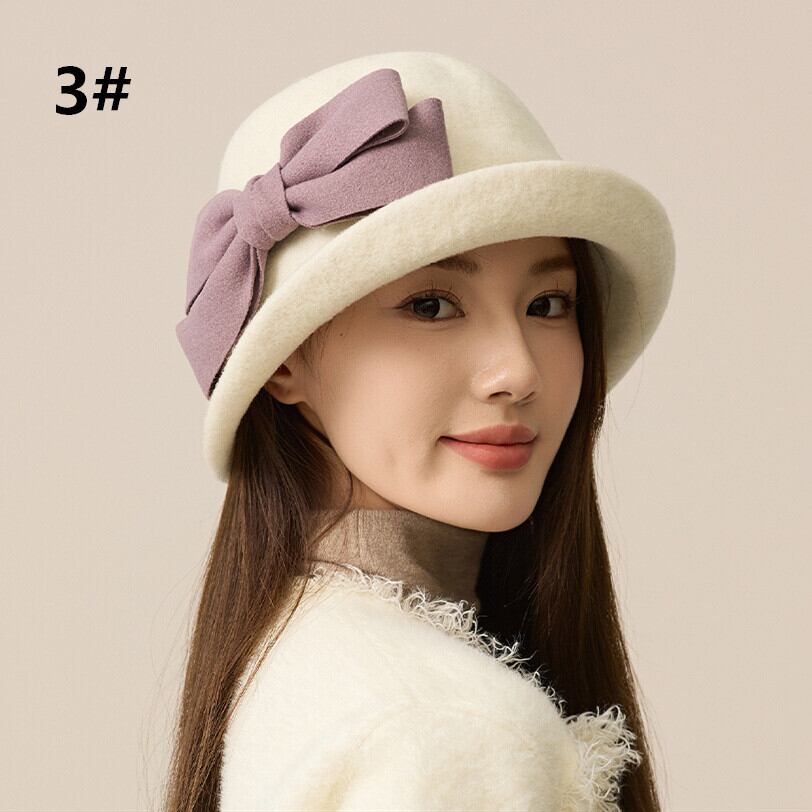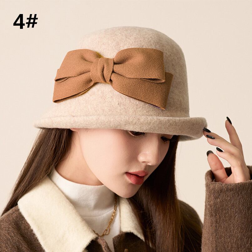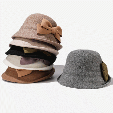 秋冬新作 バケットハット 帽子 レディースバケハ ハット ウール 高級感 リボン 可愛い