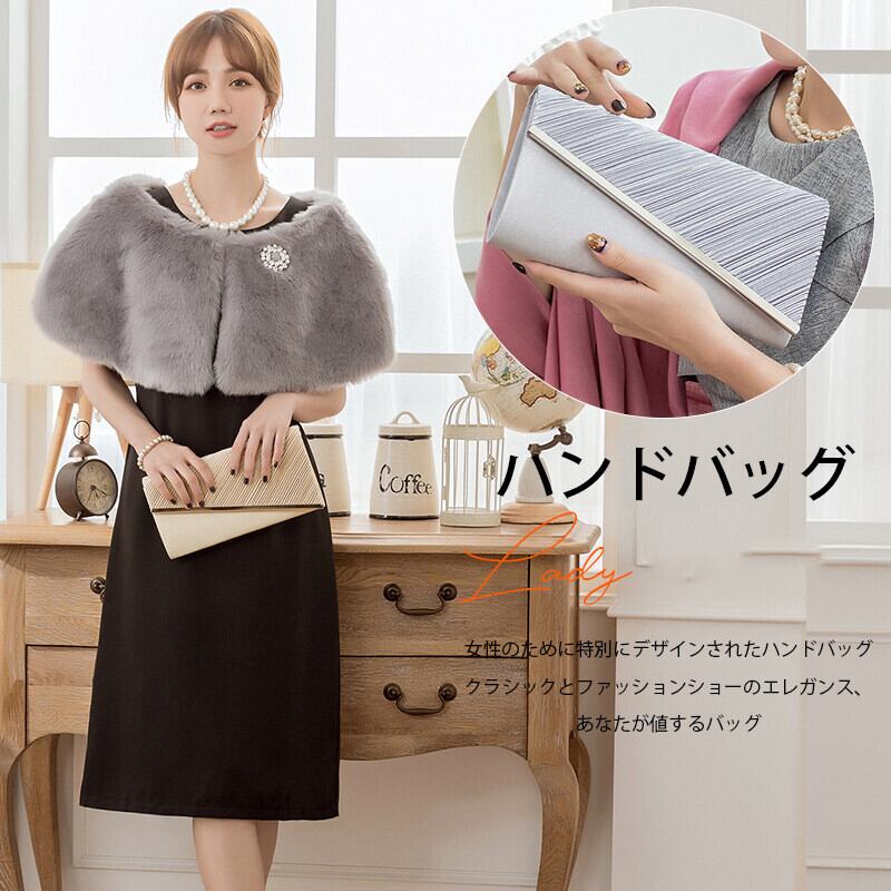 プリーツ状のサテン地がきらきら光るクラッチバック。
