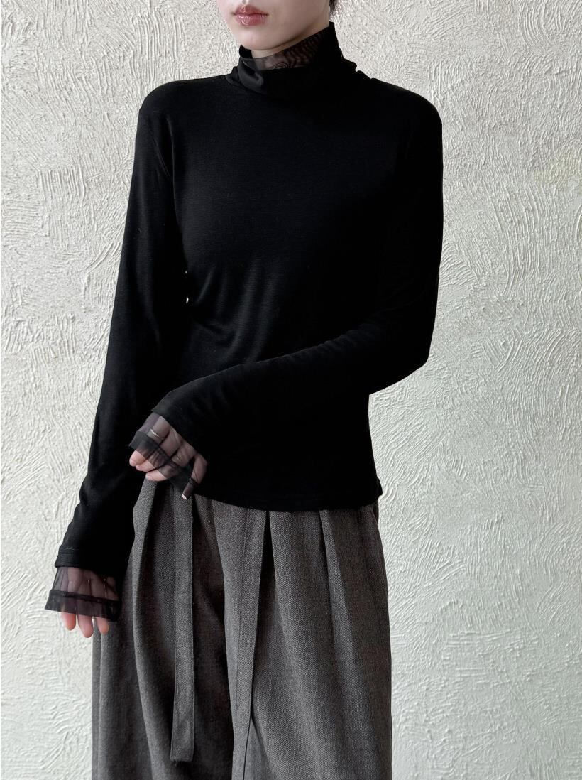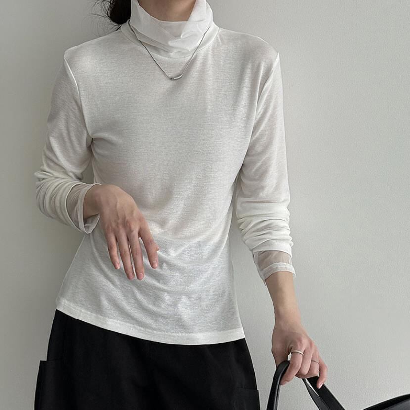 トップス レディース カットソー Tシャツ ハイネック インナー 長袖 2色 韓国風 2025秋新作