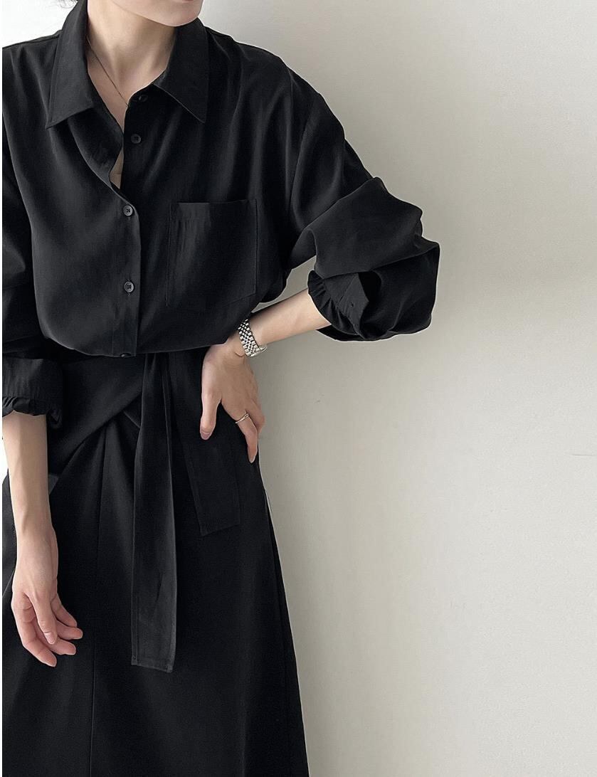 トップス レディース ロングワンピース シャツ 長袖 通勤 2色 韓国風 2025秋新作