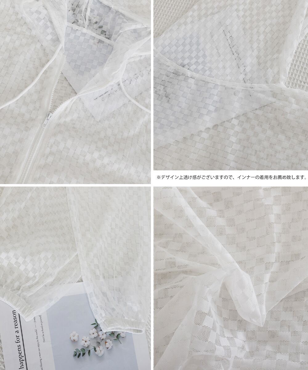 フード付きシアーカーディガン ジップアップライトアウター 春夏服 透け感 ボリューム袖 薄手長袖羽織り 涼しい おしゃれ