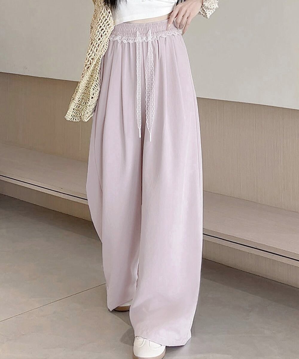 夏にぴったりのレース付きワイドパンツ。