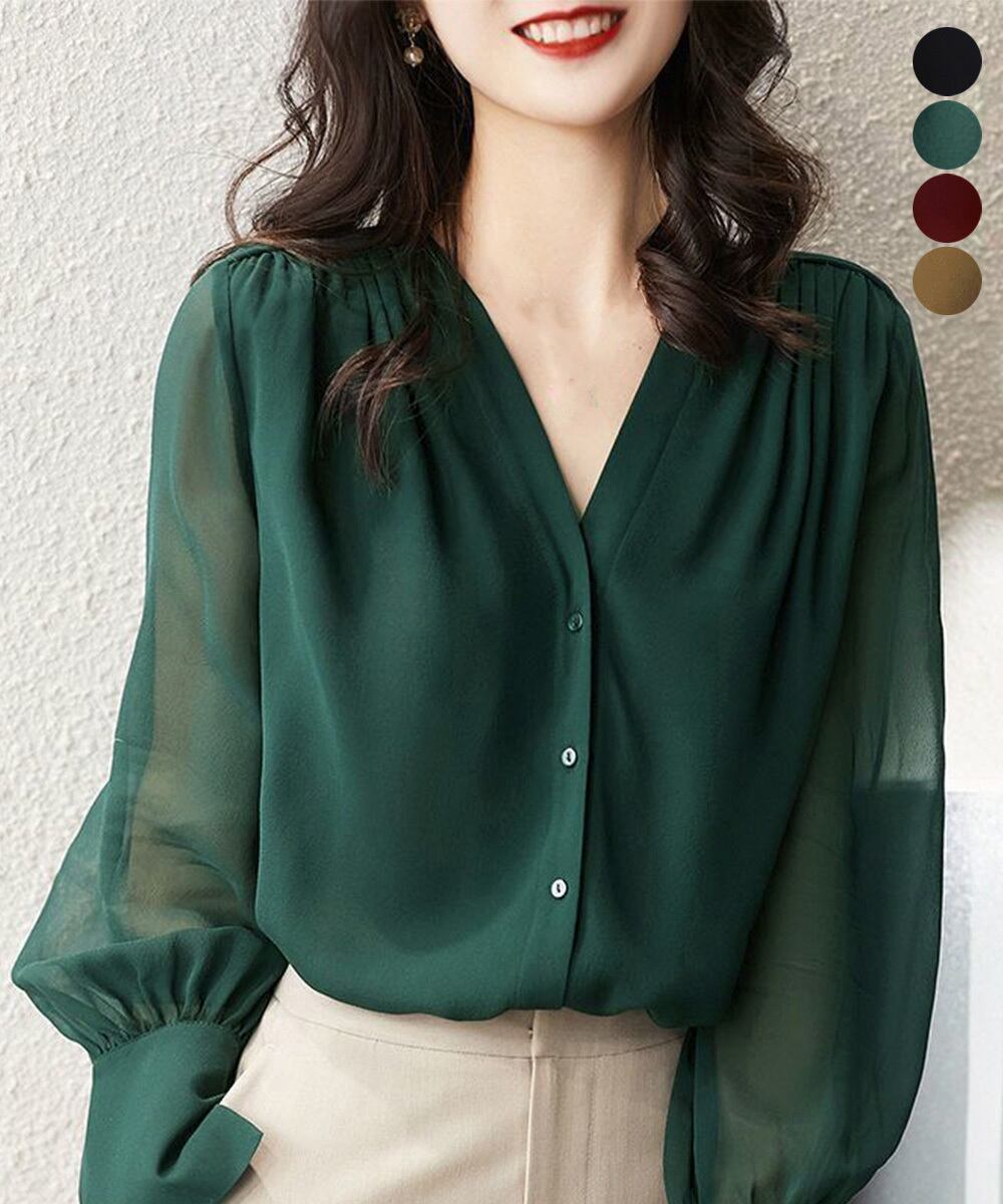 シフォンブラウス 通勤シースルートップス