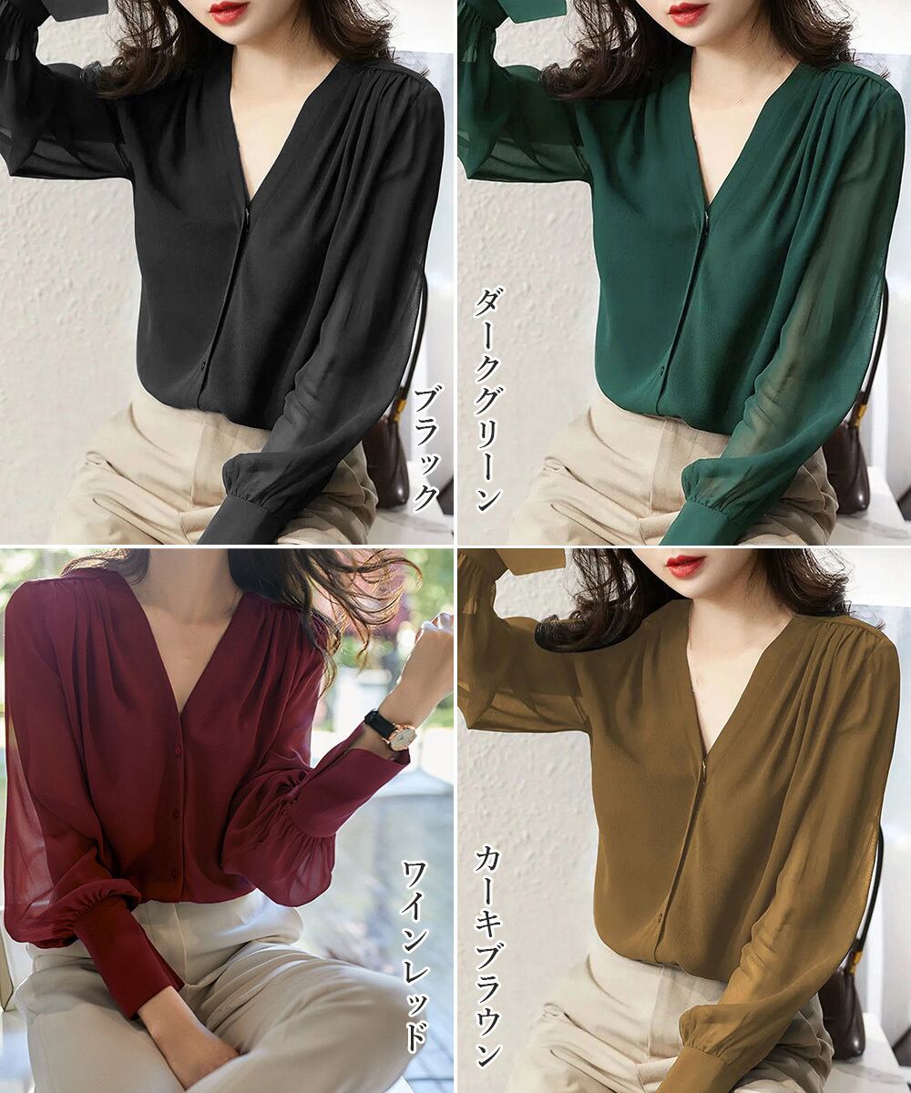 レディース V ネック オフィスOL シャツブラウス 薄手 着やせとろみシャツ 30代40代50代 きれいめブラウス春夏
