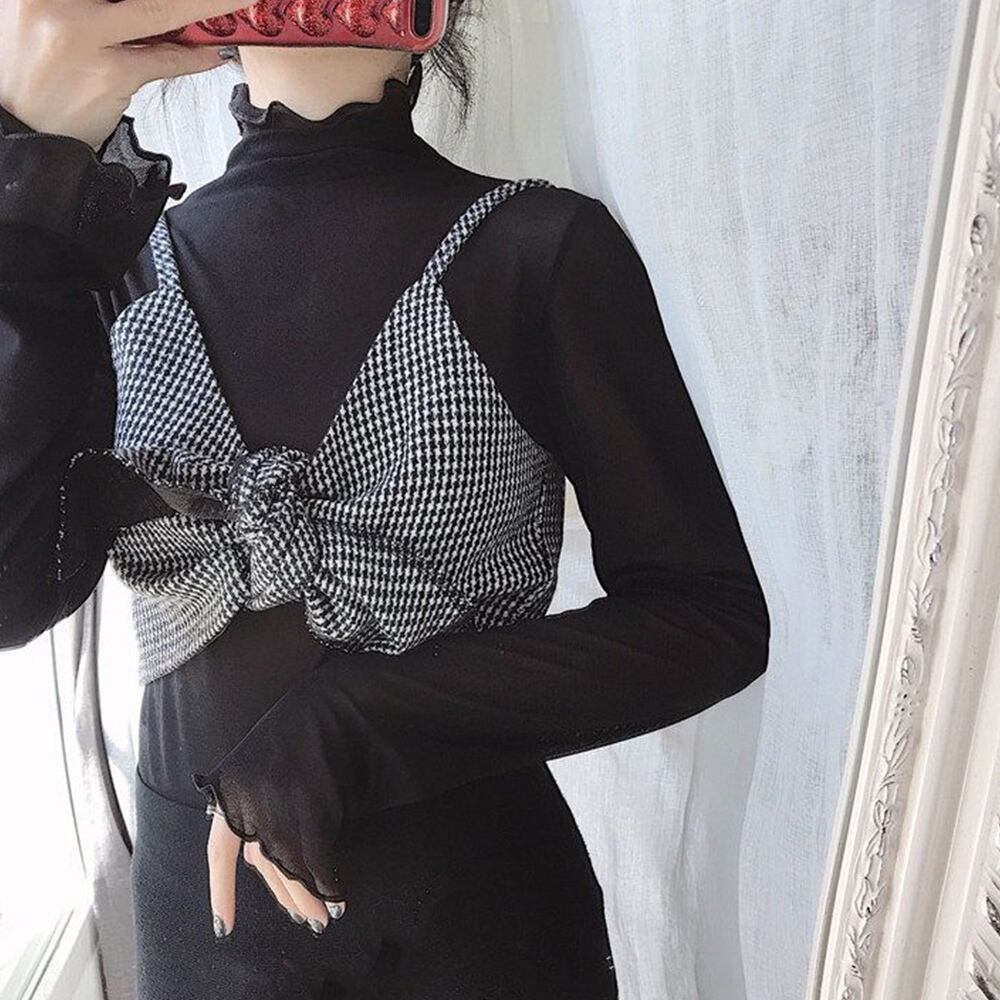 大人気 トップス レディース 長袖 シースルー プチハイネック ブラウス 透け感 韓国ファッション ソフトセクシー 春