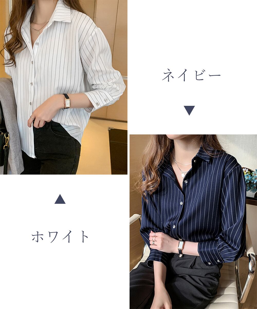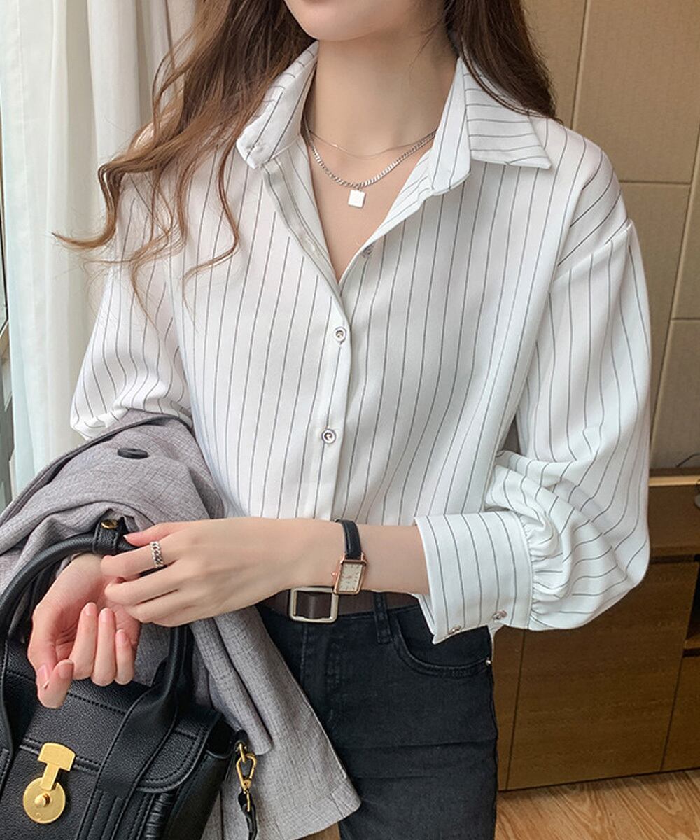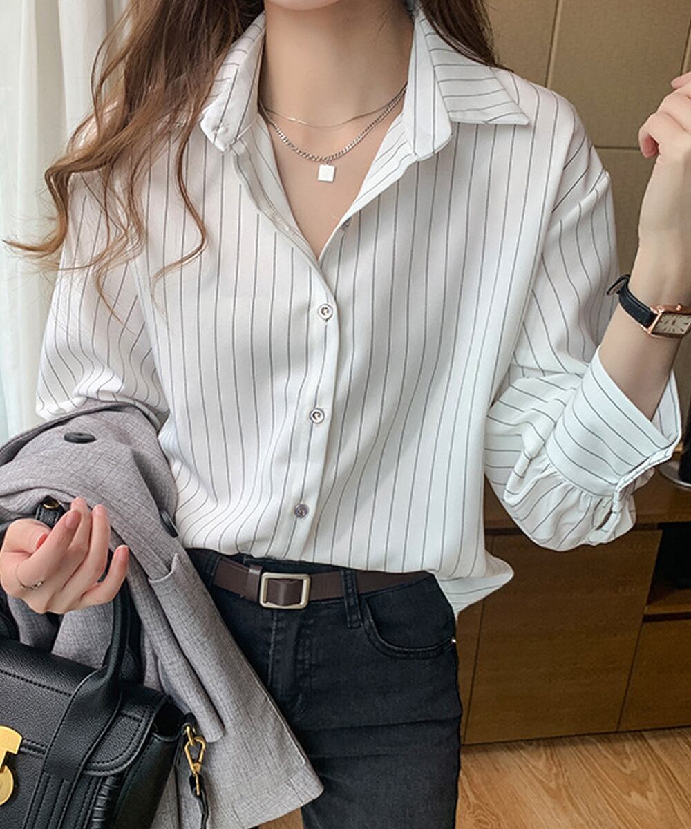 洗練されたシルエットを作り出すレディースストライプ柄シャツ