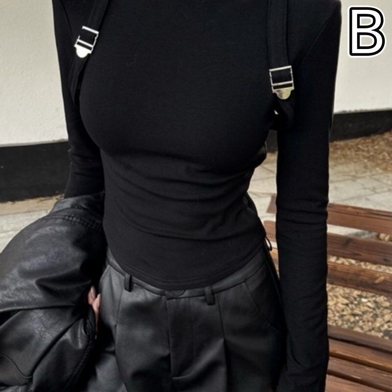トップス カットソー ロンT Tシャツ ハイネック 細身 スリム タイト レディース