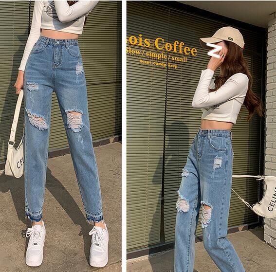 パンツジーンズ★S-2XLデニムパンツ★ファッション★ダメージデニムパンツ★ストレート