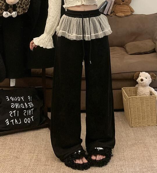 ■リラックススタイルに最適なスウェットパンツ 柔らかな素材を使用したスウェットパンツは、自宅でのリラックスタイムや外出時にもぴったりなアイテムです。特色あるレースのデザインが加わり、カジュアルさの中に女性らしさを演出します! 着心地の良さとスタイリッシュな印象を両立させたこのスウェットパンツは、さまざまなコーディネートに活躍すること間違いなしです。