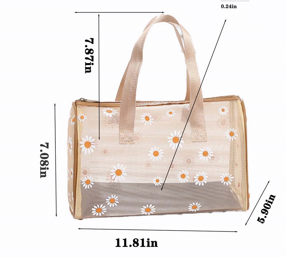 ハード柄 ボストンバッグ ハンドバッグ レディースバッグ メッシュ 小物収納 ドット 花 大容量 オシャレ