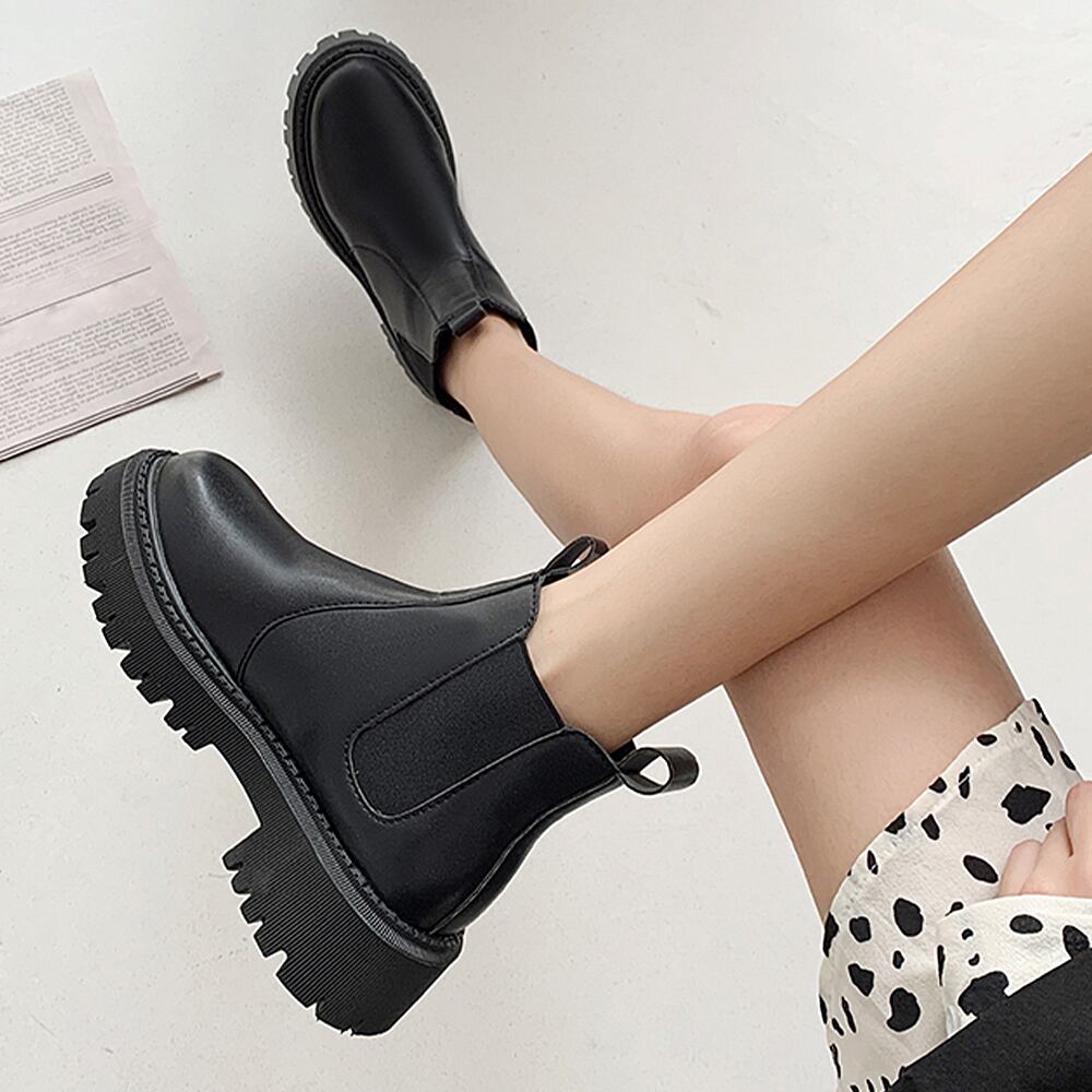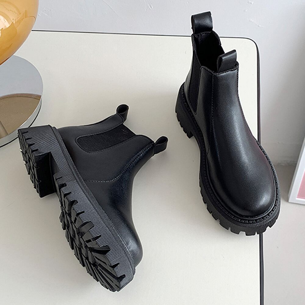 ブーツ ブーティー 合皮 歩きやすい ショート丈 秋冬 ワークブーツ 厚底ブーツ カジュアル ブラック 黒