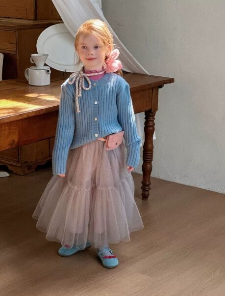 このキッズスカートは、日常のお出かけや特別な場面にぴったりのデザインで、かわいらしさ満点です。軽やかな素材を使用し、動きやすさが特徴的です!