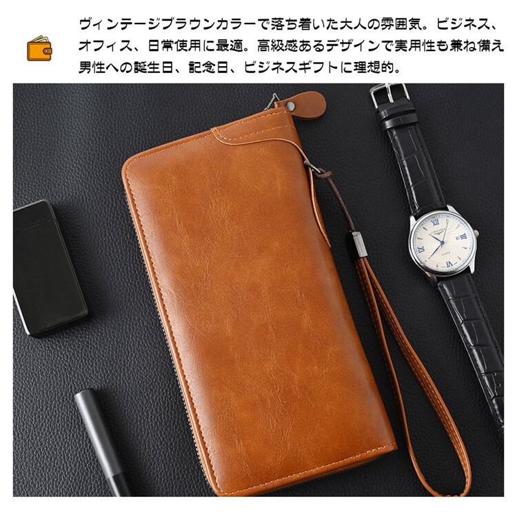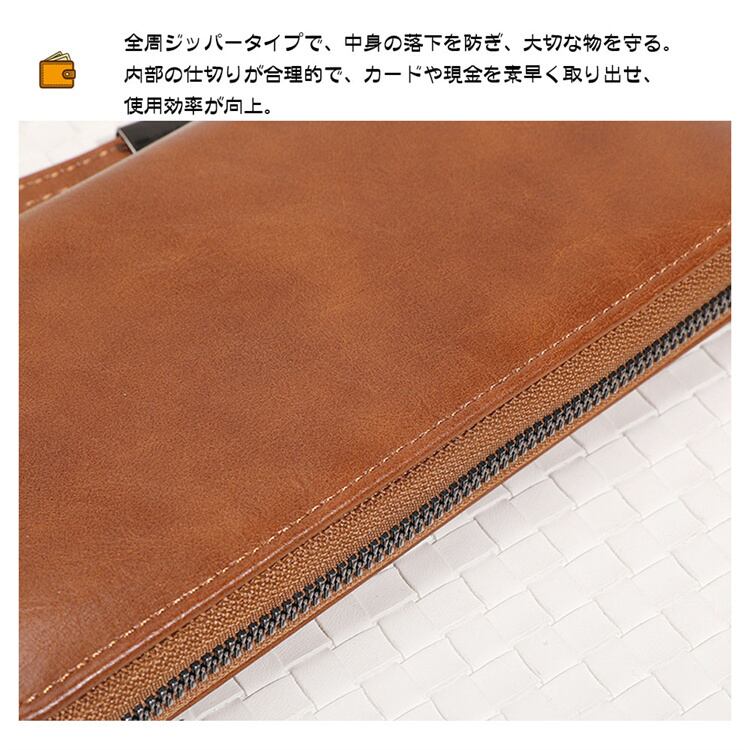 通勤用ビジネス財布 男性向け 円形ファスナー長財布