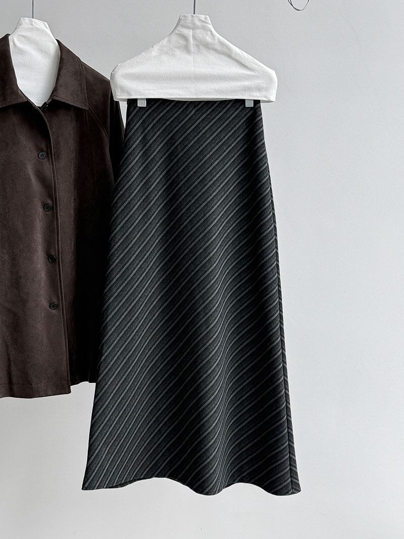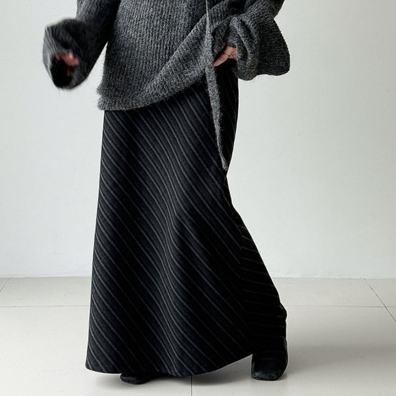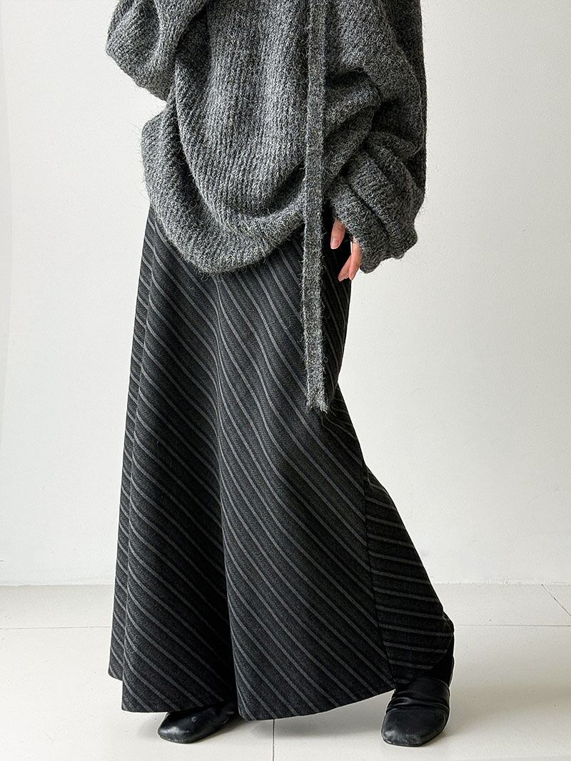 フレンチレトロな雰囲気が漂う斜めツイルウールスカートです。