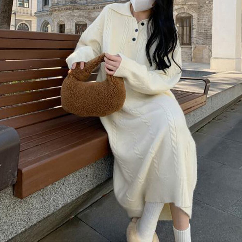 ケーブル編み ニットワンピース 韓国秋冬
