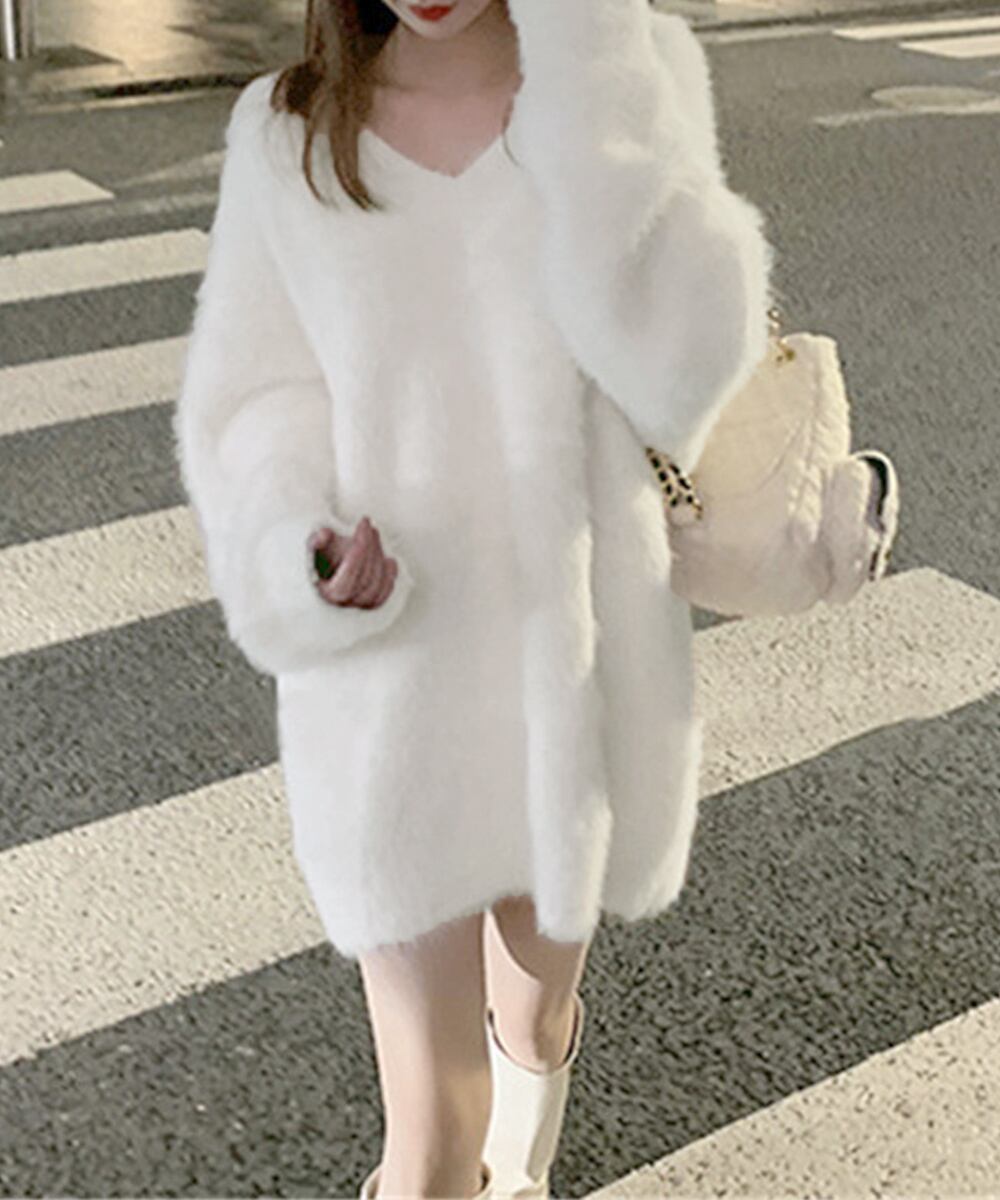 セーター 無地 Vネック ゆったり シャギー 着回し 大人 シンプル カジュアル セクシー きれいめ