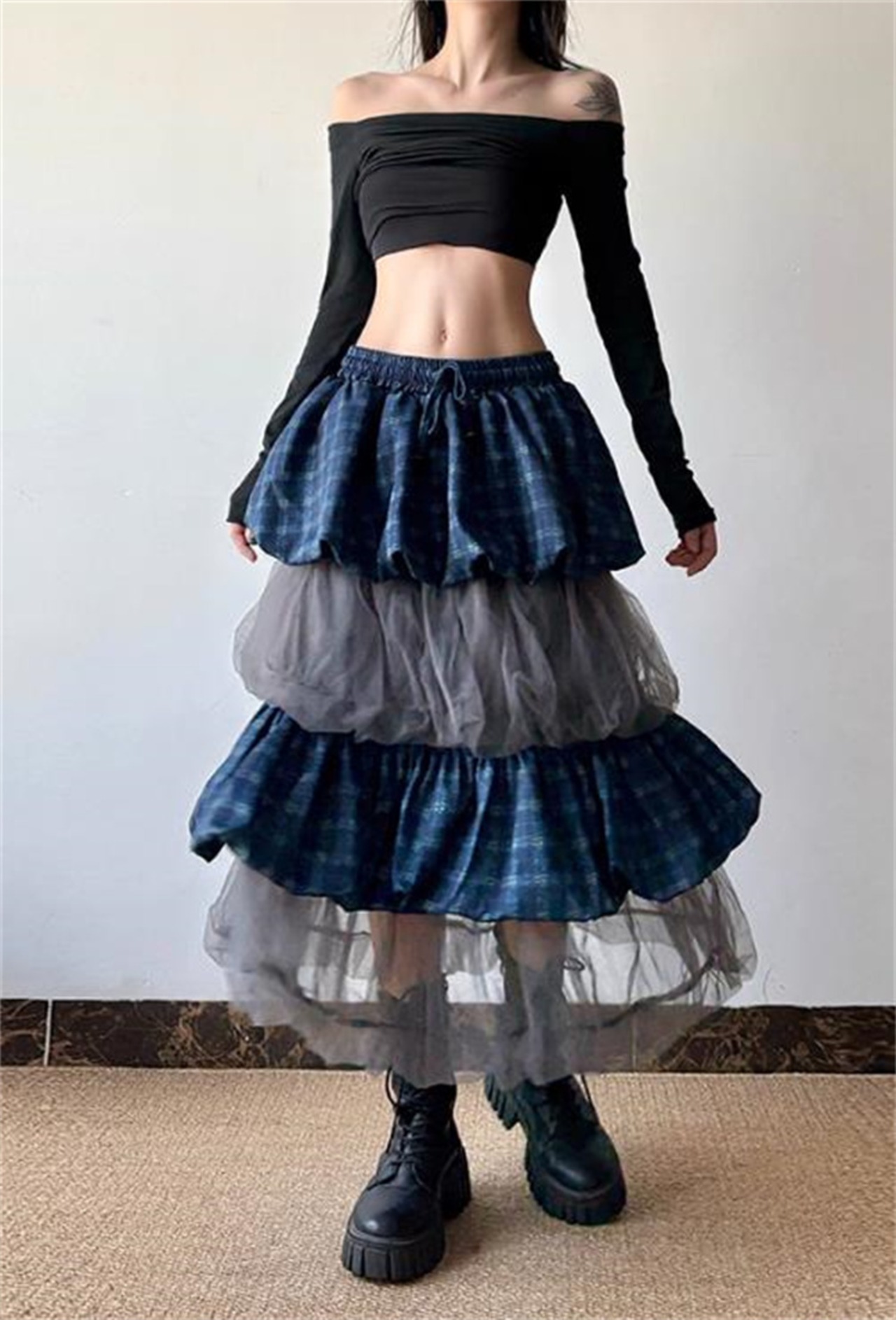 透視メッシュコンビネーション ユニークなデザイン ハイウエストゴム 抽びひも調節