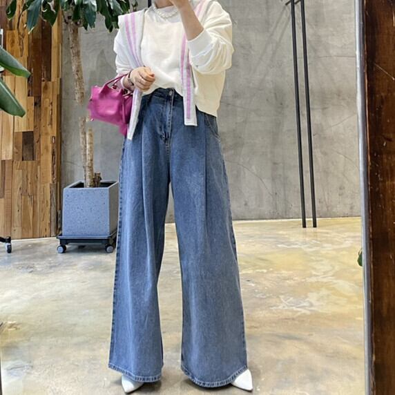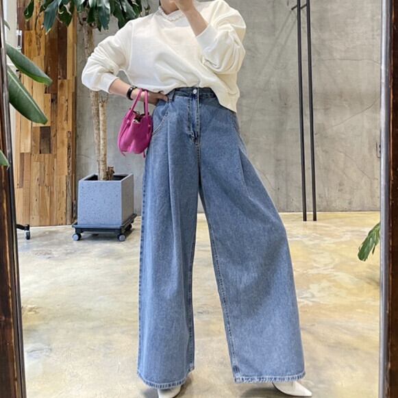 ストレートシルエットが綺麗なハイウエストデニムパンツです。
