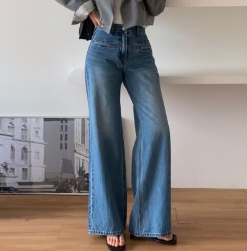 トレンド感満載のハイウェストワイドパンツが登場! リラックスしたシルエットが、動きやすさを提供しながらもスタイリッシュに着こなせます。デニム素材で、カジュアルなコーディネートにぴったりです!さらに、ハイウェストデザインが脚長効果を実現♪