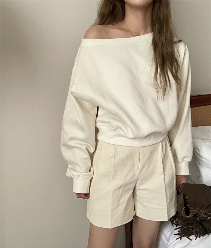 プルオーバー トレーナー レディース 長袖 トップス 春 スウェット オフショルダー カジュアル 可愛い