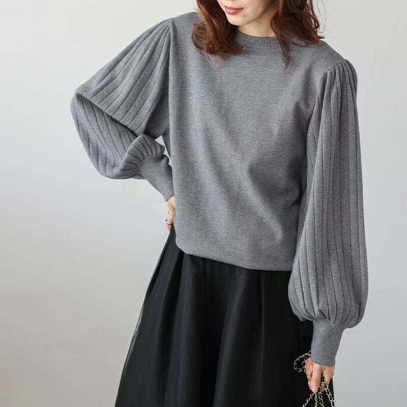 ニットトップス レディース ラウンドネック トップス ビッグシルエット ランタンスリープ 大人 可愛い