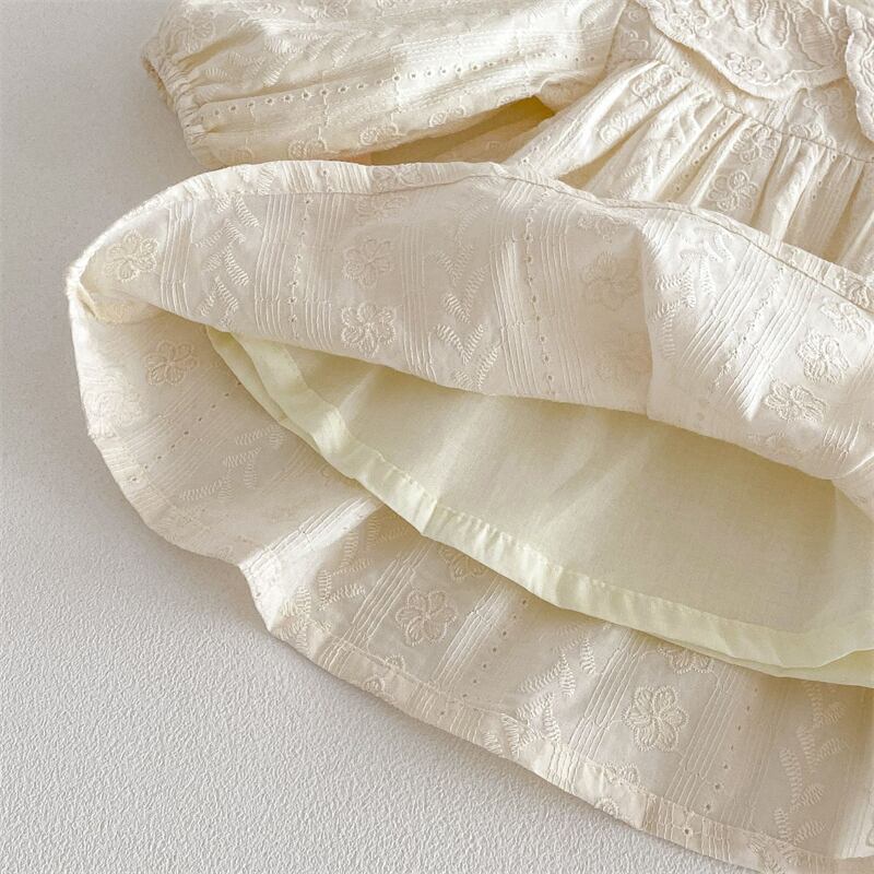 女の子 ピーターパンアラー 長袖 ジャカード ワンピース 子供服 可愛い おしゃれ