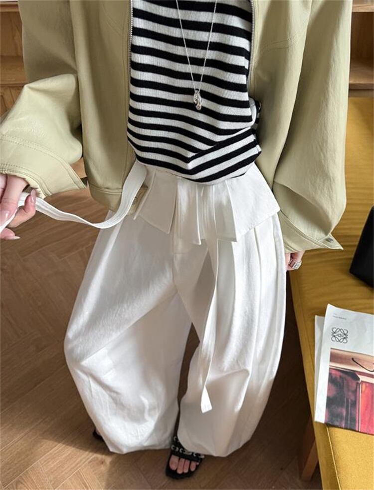レディースハイウエスト フェイクツーピースレース切り替えワイドスーツパンツ