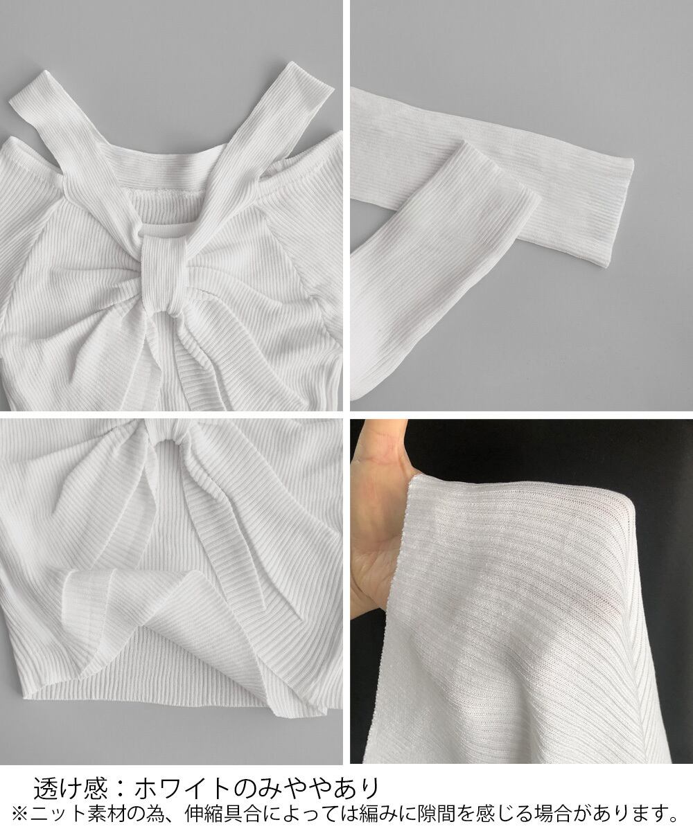 フロントリボンリブニットトップス大人薄手