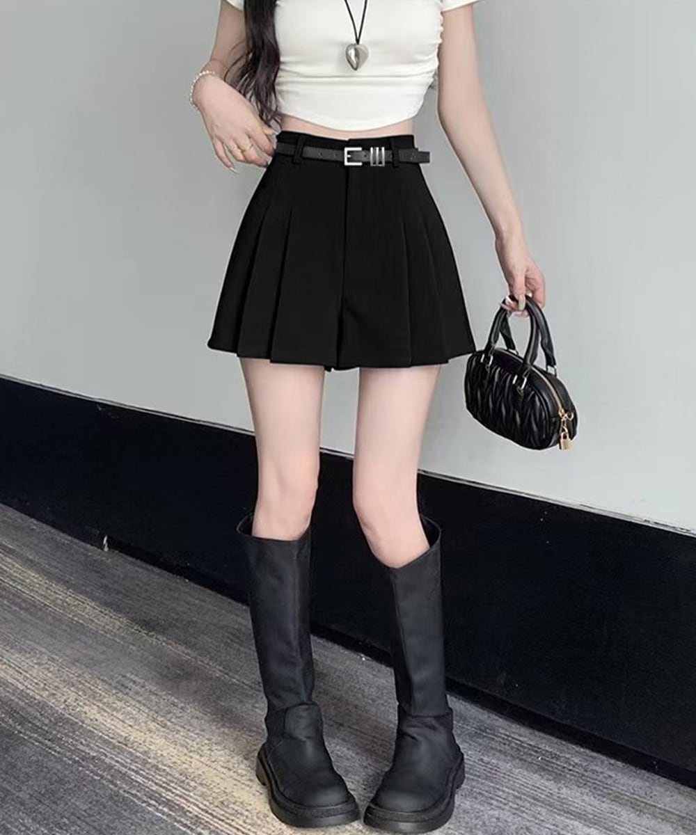 ベルト付プリーツショートパンツレディース